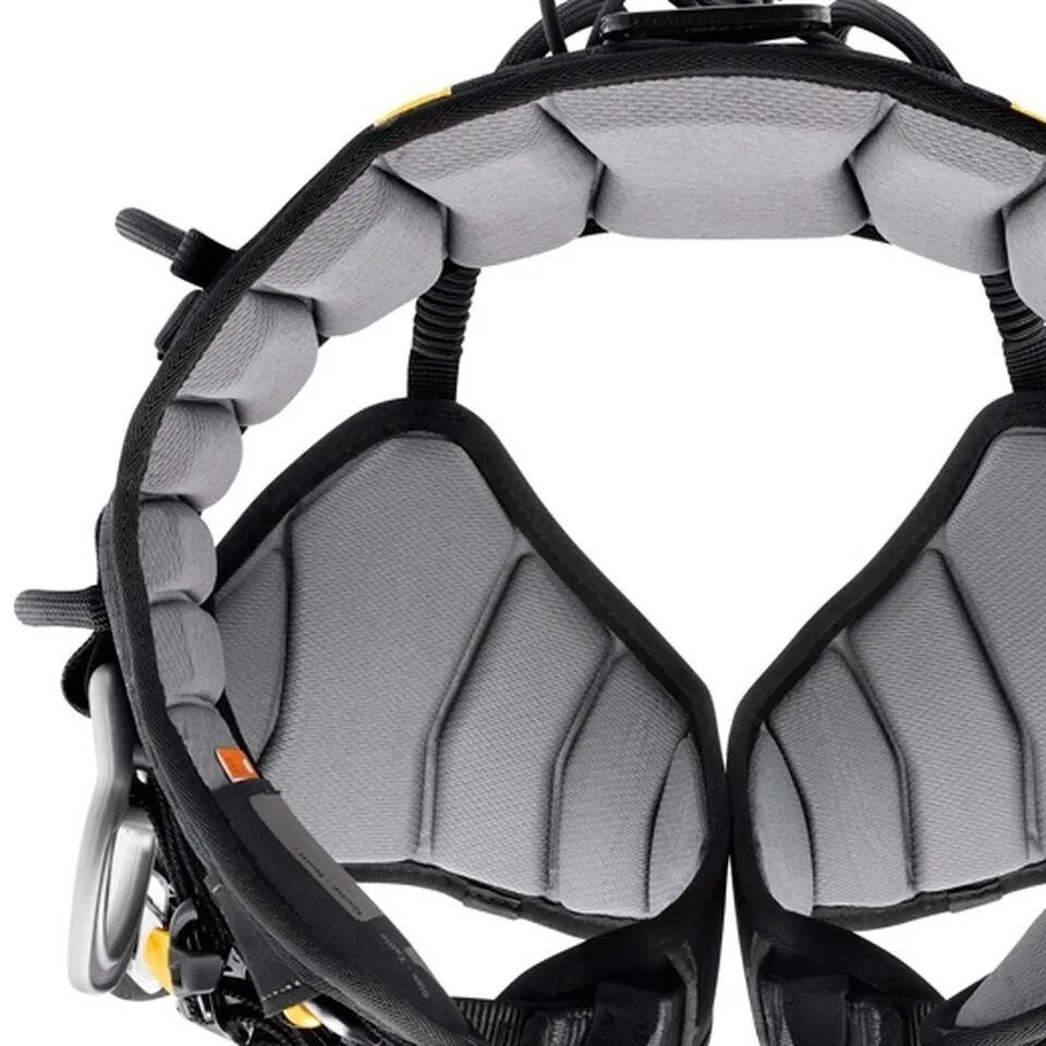 - Semi-rigid, wide waistbelt and leg loops for excellent positioning; sculpted and lined with foam padding for comfort during suspension